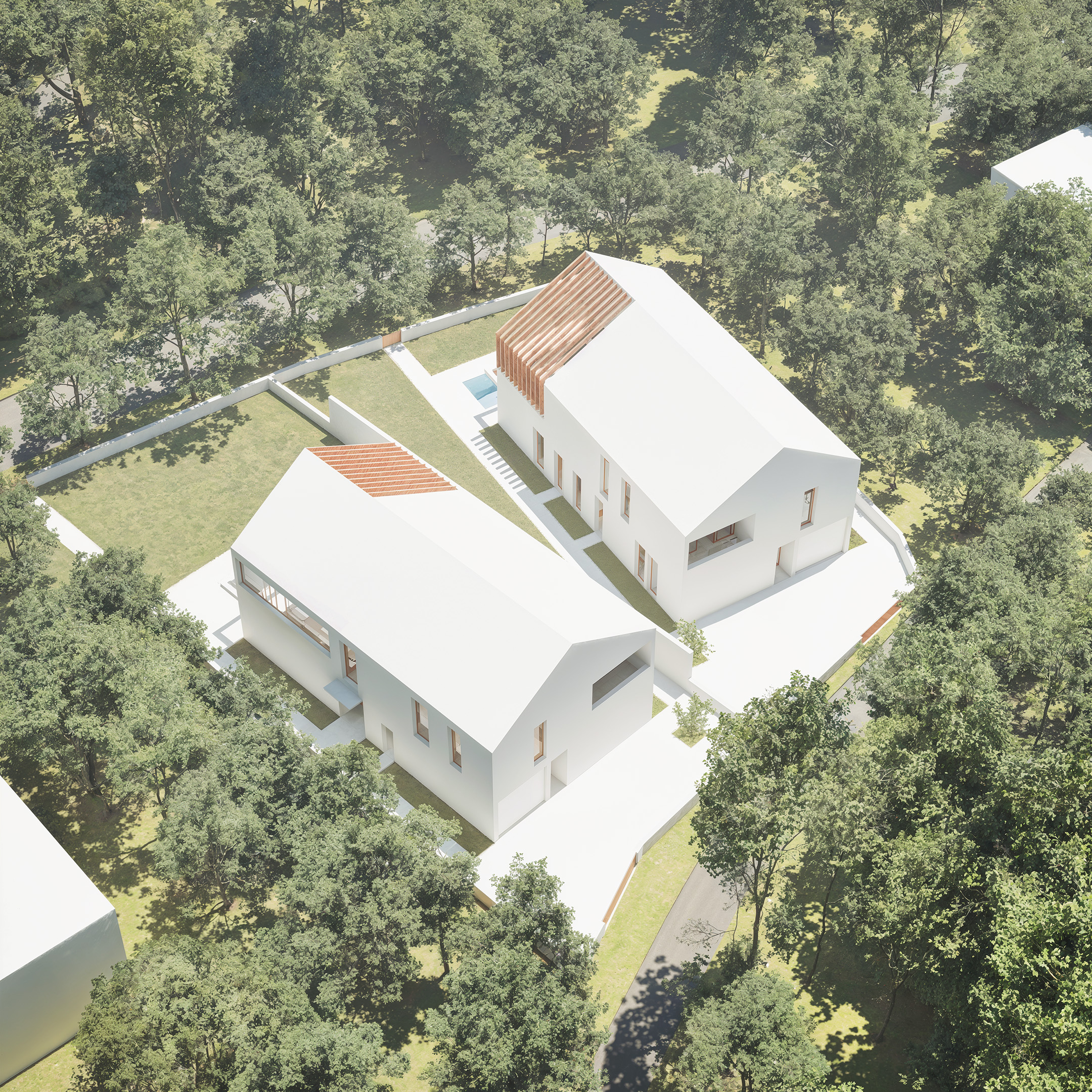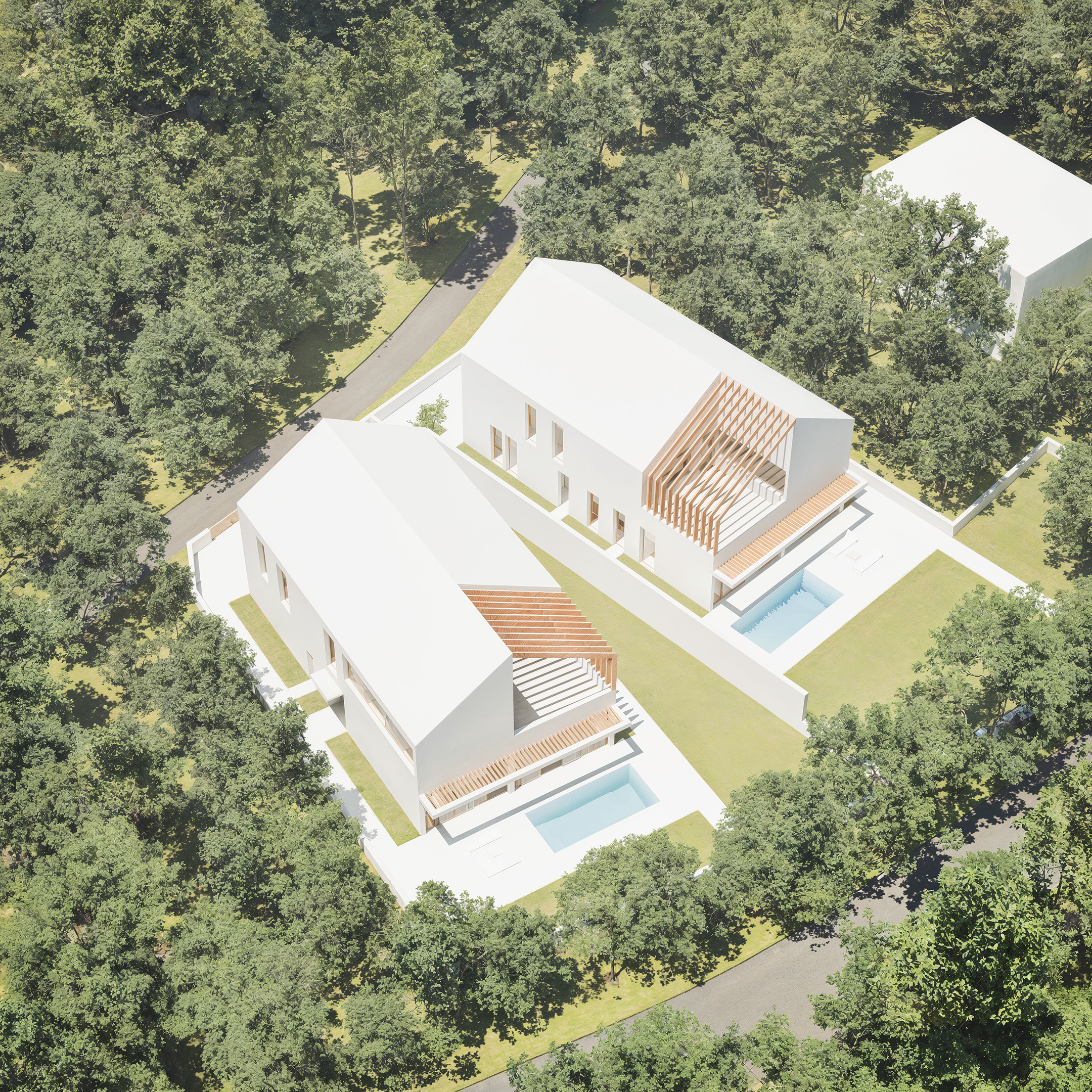 The structure is conceived as a modern and minimalist interpretation of the traditional gable roof form. The facade design, combining the simplicity of white with the warmth of wood, allows the building to exhibit a calm yet strong stance within the landscape. Slits in the mass, expansive glass surfaces, and semi-open areas (pergolas) blur the boundaries between indoor and outdoor spaces, allowing natural light to filter deep into the structure. Gallery voids and skylights enhance the volumetric richness of the space while strengthening the relationship with the sky.